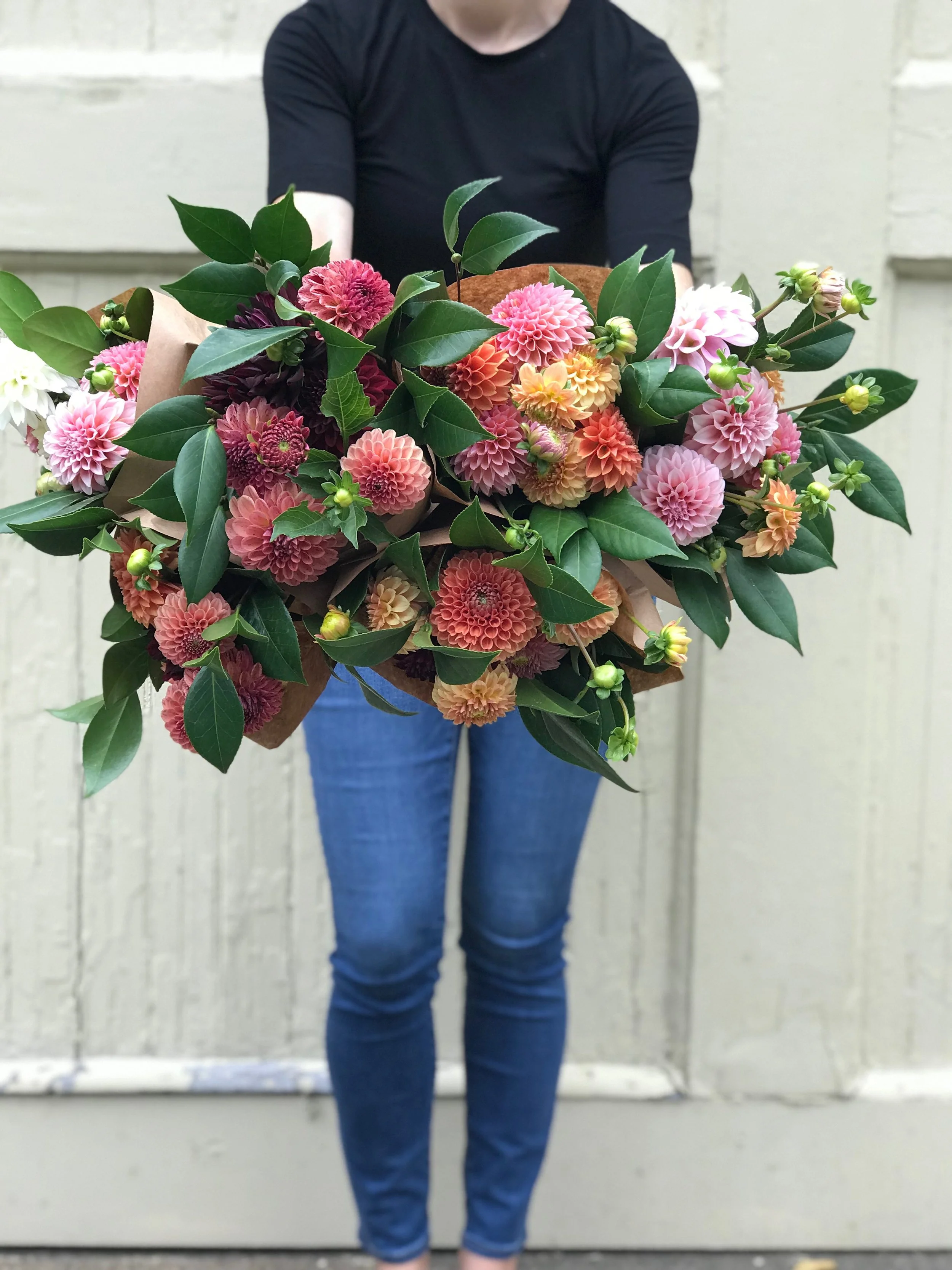 Dahlias with Camelia foliage from Field Day Creative.
